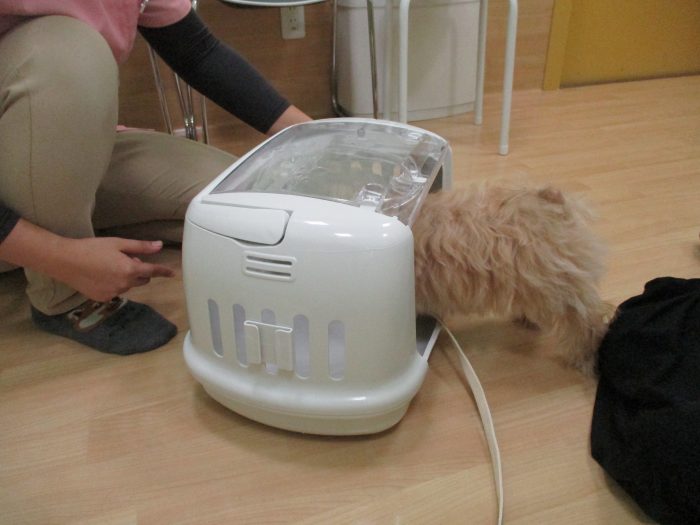 クレートの中でリラックスして待機できるようになっておくことが大切です!