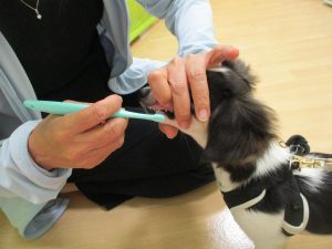そしてクラス8回を通して練習することと、自宅での飼い主様の自主練習を経て、永久歯に生え変わるちょうど卒業の頃に、上手くいけば歯ブラシを使った歯磨き練習までできる子もいます