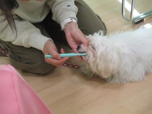 卒業生の発表では、おすわり→おて→ふせ→あご(歯磨き練習) を披露してくれました