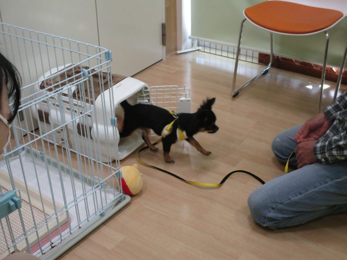 パピークラスのクレート練習では後者の嬉しい経験を積み重ねていきます