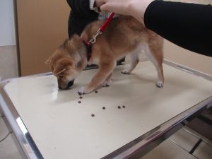 診察台にはたくさんご褒美がのっていて、身体を触られると美味しいおやつがもらえる