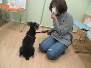 名前を呼ばれたら飼い主様と目を合わせるという練習をしていきます